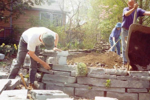 In the end, we are most indebted to two people. One was able to incorporate our ideas into a coherent garden design (as the story goes, sketched onto a cocktail napkin) and one who was a professional stonemason, whom we hired for the build. The latter was a financial splurge that proved to be well worth the cost. The rental of a backhoe also proved to be a great time, and back, saver.
