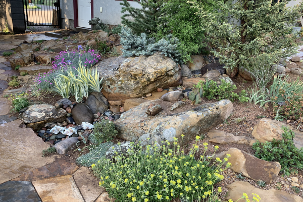 The first order of business with any rock garden is, well, rocks. Here in Durango, we have lots of them, especially the tawny Cretaceous sandstone outcroppings that rim of the Animas River valley.