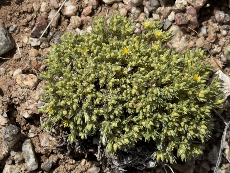 Among the very nice field trips at the NARGS Annual meeting in Cheyenne, Wyoming, was a day at Chalk Mountain (Carbon County). This is a low, flat-topped mountain with friable limestones and sandstones. It was a pleasure to be introduced to the botanical delights of this mountain by our trip leader, Bonnie Heidel. You might ask why Chalk Mountain, at barely 8,000 feet (2400 m) elevation would be so interesting when there are so many mountains in the area that reach high into the alpine. Chalk mountain, as the name suggests, has limestone derived soils, which often produces a rich flora, sometimes including rare and local species adapted to the highly calcareous soils. These plants are of particular interest to me as my home garden is in an area of calcareous soils. There was another draw. Southern Michigan, where I live, has quite hot summers, so high elevation alpines are hard to manage. Though Chalk Mountain is much drier than southern Michigan, at least that is only one strike against us easterners thinking about growing some of these plants.