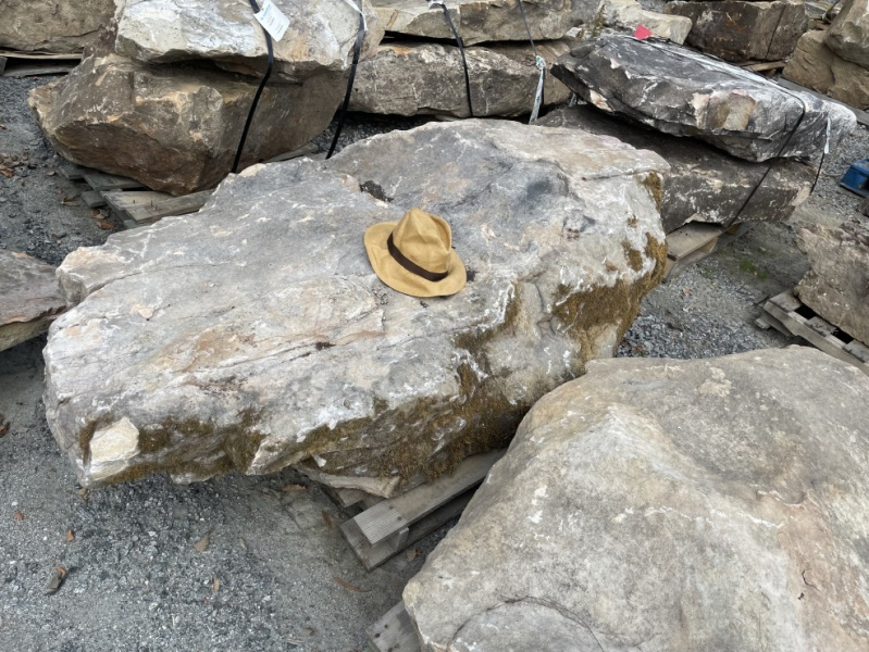 We agreed on the foundation design. An eighteen-inch-deep (45 cm) cavity that sloped up to twelve inches (30 cm) at the edge would define the work perimeter. A 3000-pound (1360 kg) flat boulder would be positioned to act as a “sitting stone.” Clare and I are both fond of the Burren in the west of Ireland so we wanted to incorporate klints (also spelled “clints,” blocks of limestone that make up the iconic pavement of the Burren). As much as possible we wanted this to be toddler friendly as our granddaughter would be a frequent visitor. Jeremy suggested six pallets of stone would do the trick.