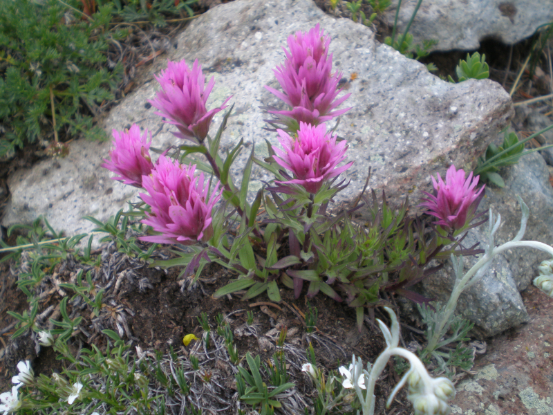 Polemonium confertum, Colorado’s only endemic Polemonium, is even more stunning than the more widely spread and beautiful P. viscosum. It has larger heads of flowers and inhabits screes and rocky areas, while P. viscosum prefers stable tundra. Seed has geminated easily, and we will see how it does as a garden plant.