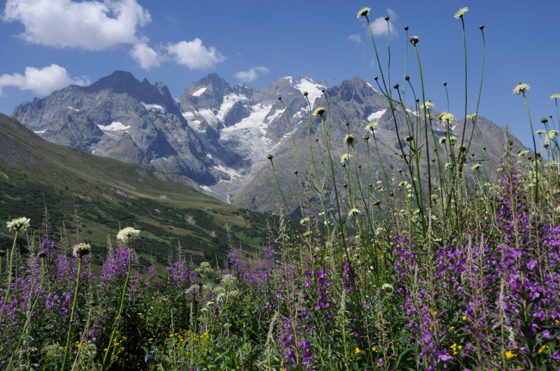 At an altitude of 2100 meters (6,889 ft), with a magnificent view of the glaciers of the Meije, the alpine garden of the University of Grenoble is located on the Col du Lautaret in Hautes-Alpes, France. Here, in this land of mountain giants, you will find the dwarfs among the plants in all their beauty.