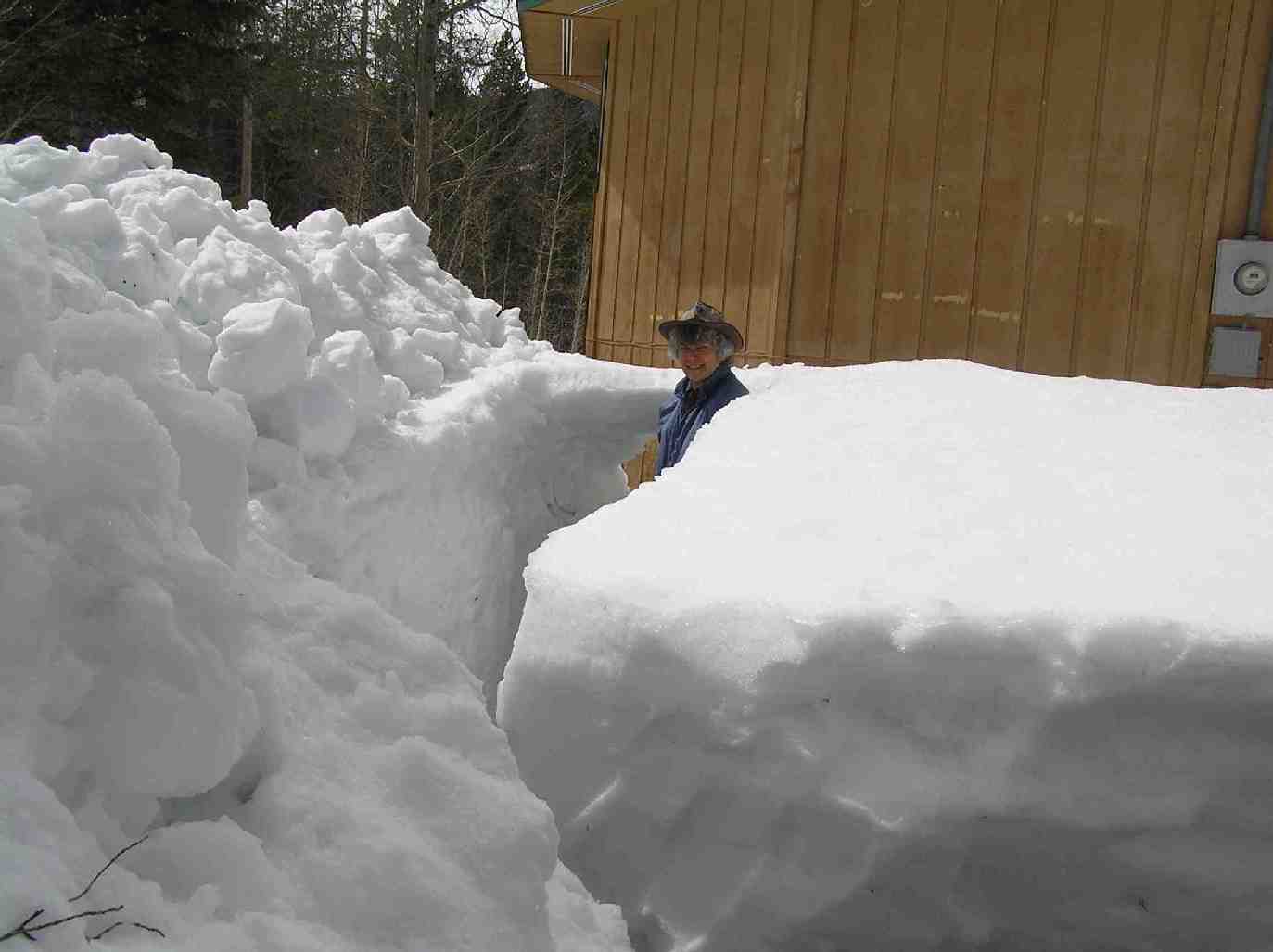 In snow years like this one, I have to climb up to the top of the 10-foot-high snow piles and cut off several feet at their tops so we can throw up more snow from forecast future snowstorms.