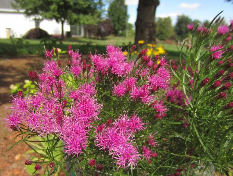 Flowering nicely now is Vernonia lettermannii. I had to protect this plant, it is rabbit caviar and the last two years it was munched repeatedly, so it is protected by a wire cage this year. The flowering stems are just a smidgen over 2' and with very fine dark green foliage, what a fine plant.