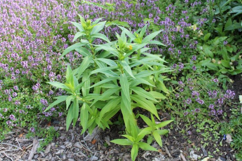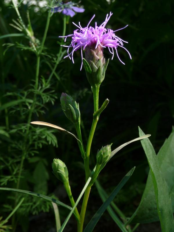 Tthe first flowering of Liatris cylindirica from seed, and when is this Silybum marianum going to stop growing! It's 33 inches wide! And nothing does better than a volunteer seedling - this one Penstemon hirsutus var. pygmaeus.