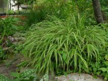 Hakonechloa macra 'Albo Striata' sat for 5 years in the garden never increasing at all. Then I planted a pulmonaria next to it, thinking the grass would never amount to anything. As the lungwort grew, the Forest grass was somehow stimulated! Now after a total of 13 years, that dinky little plant looks very nice.