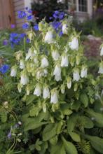 Campanula sarmatica; Hosta 'Blue Mouse Ears':