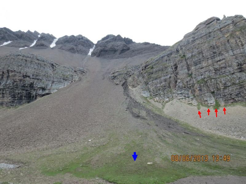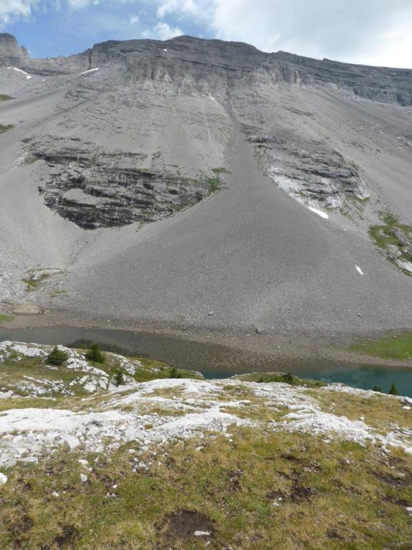 Have you investigated the flora at the top of the talus slopes, where the talus meets the mountain cliffs?  I see a lot of vegetation there where I assume water is more plentiful and more constant at or near the surface.  Is this biom drastically different from at the base of the talus slope?  (If I may mutilate one of your photo, blue arrow versus red arrows.)