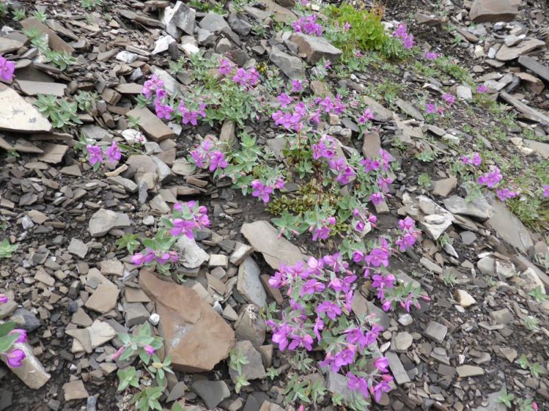 It was still early on the big scree fan (the end of our hike at ~2600m elevation) - these Epilobium latifolium were the most abundant plants in bloom; many other species were still in bud: