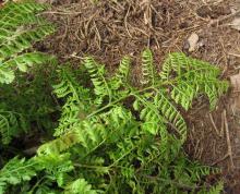 I'm looking to add more ferns to my garden, here's a recent addition from Broken Arrow Nursery in Connecticut, the Upside-down Fern, Arachnoides standishii. The leaves do give the false appearance of the leaves being upside-down.