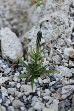 Developing first bud on Gentiana veitchiorum; from seed in 2012, started with GA-3; seed collected by Pavelka in 2008 at ,4400m, Quinghai, China.  I'm looking forward to seeing this open in the next few days.  The bud is extraordinarily elongated, almost 3cm long, as shown in the photo.