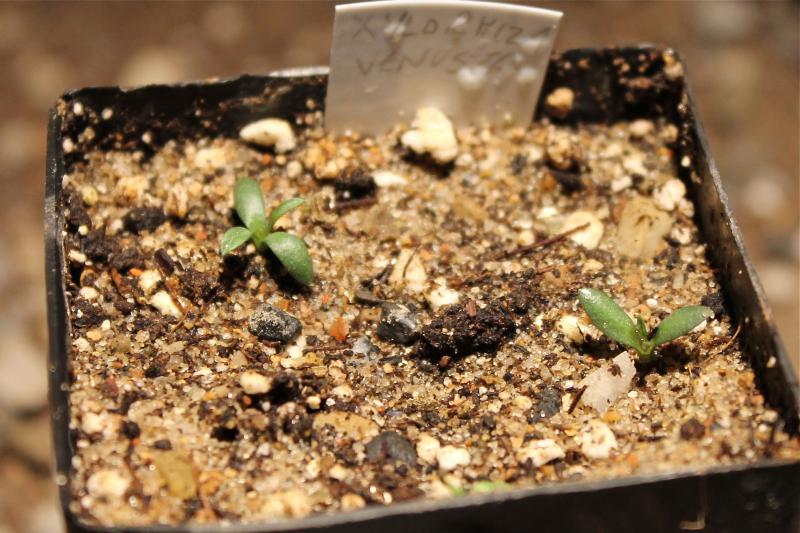 Xylorhiza venusta - Alplains seed from Utah; stratified for 4 weeks, then germinated after 4 days at room temperature.