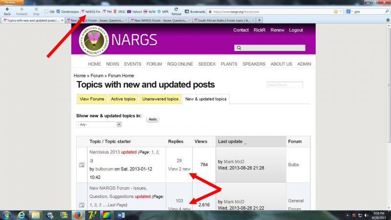 Wed, 08/28/2013 - 8:29pmMy bookmarked forum opening page is the "New & Updated Topics".