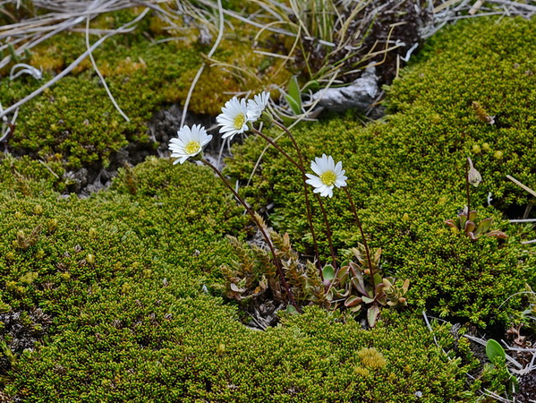 Dave , you need to look at your picture of Myosotis pulvinaris again; it is Chionohebe thomsonii. There are some nice plants of Celmisia brevifolia on that patch you photographed. It is one species of Celmisia that seems to flower reliably every year.