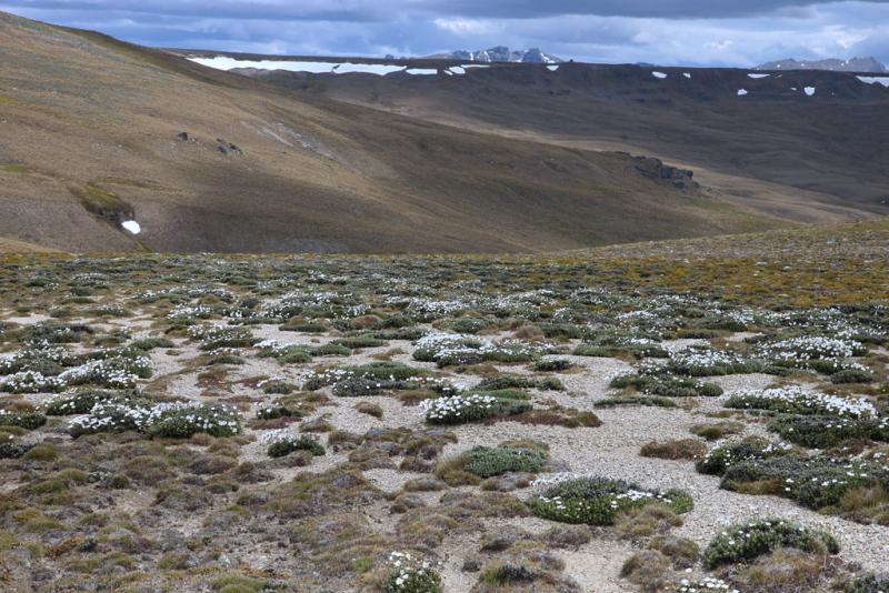 Chionohebe thomsonii is one of the prominent cushions on depleted vegetative spots.