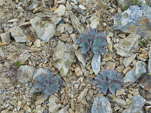 First 2 pictures are of ranunculus lyallii . There was a lot of avalanche activity last year especially at the head of the Gertrude Valley . The avalanches also bring down a lot of rock and gravel and when the avalanche snow melts large areas of gravel remain smothering the vegetation . R.lyallii is often the first to recover sending up stems through the debris from it's extensive rootstocks below ground