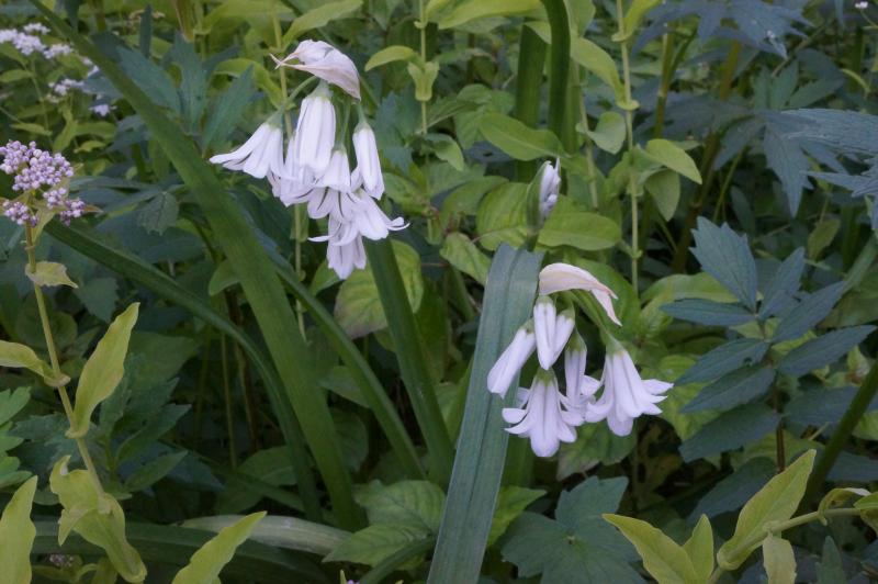 Allium triquetrum    Anemone narcissiflora(?) pink form from seed several years ago - first flowers. Polygonatum prattii(?)