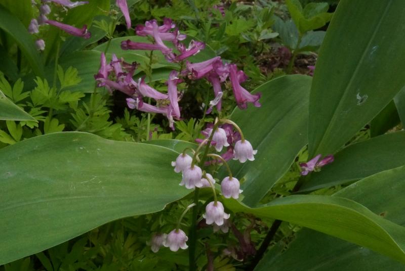 Ariaema elephas coming strong              Convallaria majalis var rosea, the fragrance is beautiful but the colour is not. Melittis melissophyllum