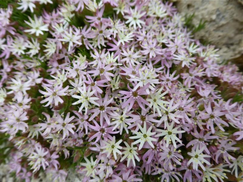 A Saxifraga known only as 'FJK3'; Eritrichium pauciflorum ssp. sajanense and a self-sown colour variant: