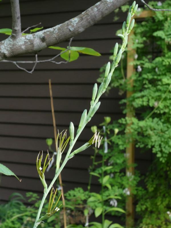 Manfreda virginica. Flowers are quite out of the ordinary. The stamen filaments always seem to have these uniform bends initially, that straighten as they age.