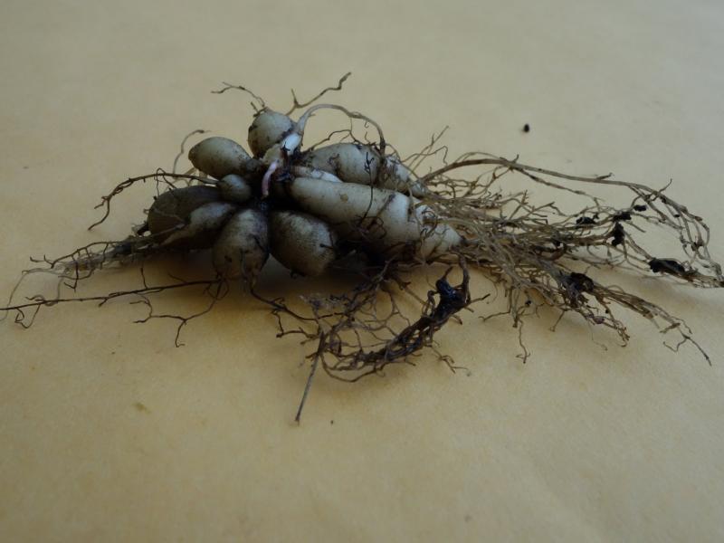 Accidentally pulled up some Thalictrum thalictroides tubers. Aconitum lamarkii