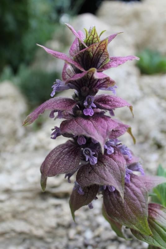 The only mildly interesting Ajuga I have is Ajuga lupulina... not near so desirable as the one you show, and quite a bit larger, I think. It blooms here in mid-June through July - quite a long bloom but clearly not so long-blooming as A. chamaepitys.
