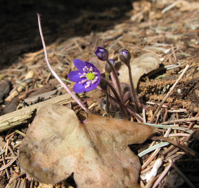 Liverleafs are among the first flowers of spring here, and are justifiably popular. As you can see, the foliage can take quite a beating here in more open areas (even despite having snow cover last winter ???).