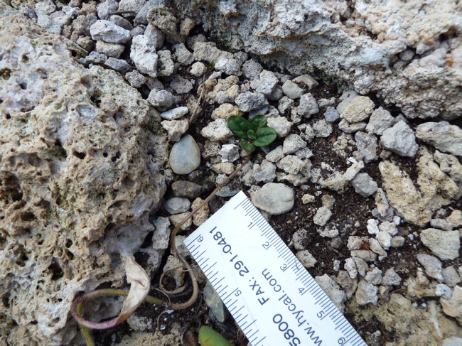 2) Cheiranthus roseus... the dried-up petioles of old leaves are visible, while the rosette of newer growth is 1" across... note the aforementioned flower buds, whoo-hoo!!  But... monocarpic (see below), acckkk!  Oh well, hope they drop seeds.   ;D