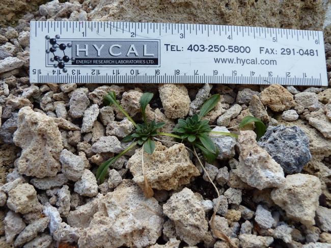 Seeds from Holubec, with the following description:  "China: Bayan Har Shan, Qinghai, 5000m, fine gneiss scree; decorative dwarf monocarpic plant, 2-3 cm high, compact rosettes, linear leaves, many rose sessile flowers, 1 cm wide; 2007 seeds."