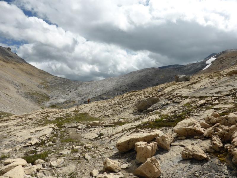 Thu, 08/22/2013 - 9:00pmEverything I've posted on this forum is from a day-hike, including this trip. Our hikes vary but probably average about 4.5 hours of walking and an average elevation gain of about 650m (up to about 1100m now and then). Distance varies from a very short one like this (probably only ~3km , though steep, given that we only went to the pass; scramble guide says 6-9 hours and 1260m elevation gain to get to the top of Little Hector) to about 26 km; average distance is probably about 15 km... all very rough estimates.
