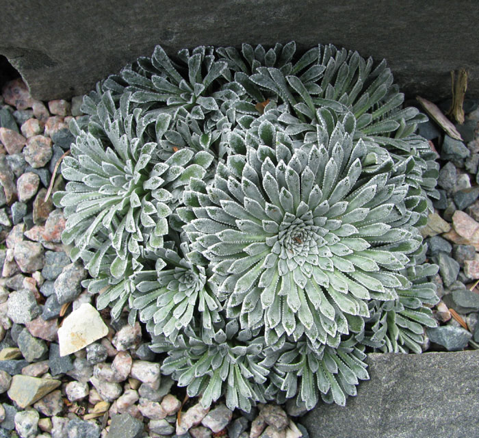 Mon, 02/22/2010 - 6:58amLori, the largest rosette is about 7-8 cm in diameter. The fact that there are so many babies implies it should not be monocarpic. I will propagate it this year so I have some back-ups. It will be interesting to see how large the sprays end up, but to tell the truth, I'd be just as happy if it didn't bloom. The rosettes themselves are beautiful. It is certainly among the most silver sax I've ever seen. Most of the other seedlings appear to be longifolias but there are two others with offsets albeit not as intensely silver.