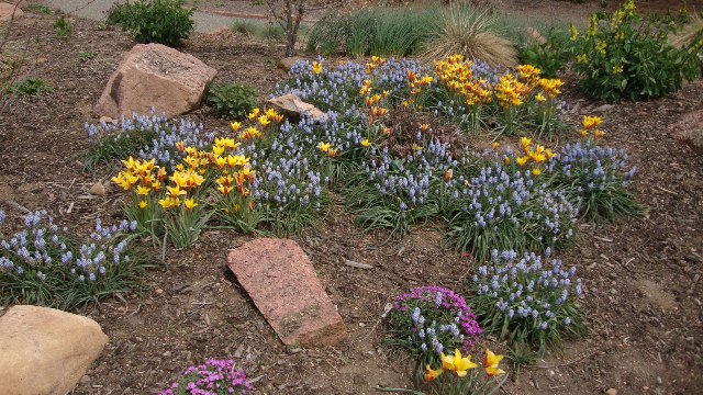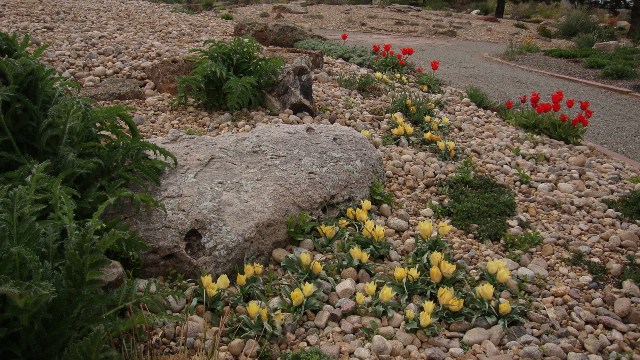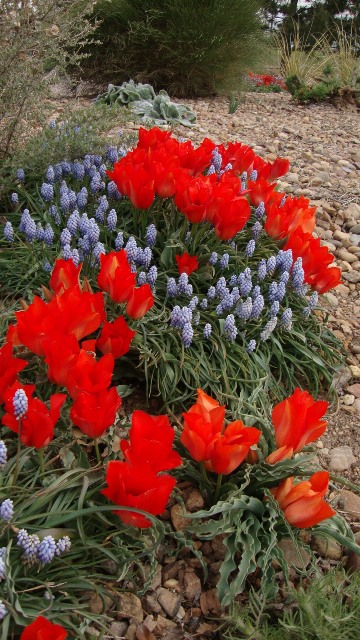 In recent years a tremendous number of amazing civic gardens have sprung up around the West, mostly funded by municipalities or water providers to show people how to garden with less irrigation. You can read more about these at this URL: http://www.plantselect.org/map.php. Many of these gardens have turned out very well, and one in particular is stunning most any time of the year. The Garden at Kendrick Lake is several acres in extent, filled with perennials (many of them bona fide alpines) and this garden is truly a mass of color from the herbaceous plants from May to autumn frost. They have extended the season earlier in the spring with a wonderful display of species and near species bulbs. Their tulips are especially gratifying. I am appending pictures I took two weeks ago: pretty wonderful, aren't they?