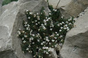 Shrubs are an important feature of all alpine and montane habitats and are essential for the rock garden. Even in a small rock garden, they bring a sense of naturalness, age, and permanence, as well as (depending on the species) vertical accents and winter interest. Well chosen, you also don’t have to replace them so often! Some are very showy in bloom, and a few even have fall color. The number of dwarf shrubs potentially available is very large, but in fact, many are too large for use in any but the largest rock gardens or for transitioning the rock garden into other areas of the garden. I’ll try to narrow the choices to the most interesting species small enough for any rock garden or even a larger trough. I’ll also provide some thoughts on using the various species, as well as offer suggestions on planting and propagation.