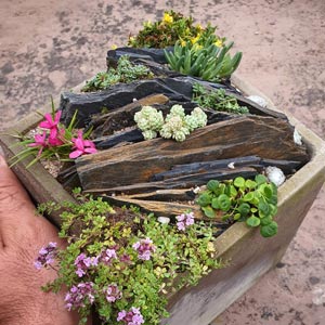 Some would say traditional rock gardens are a thing of the past. These days, not many of us have the space and means to create large rockeries, where thousands of species of alpines nestle in among huge boulders and in gravel beds resembling mountain screes. If you love alpines and your garden is small, growing these amazing plants in containers is the answer. To add drama and interest why not create miniature crevice gardens in a variety of containers, from broken recycled pots to repurposed frying pans, using materials like slate and roof tiles.