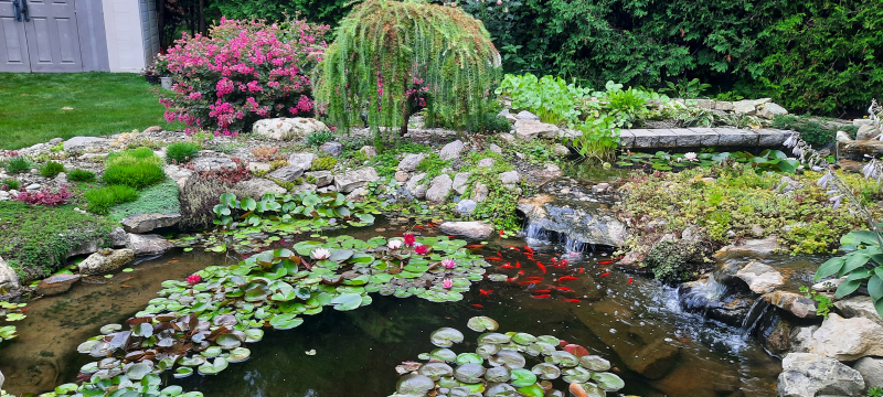 My rock garden pond contains several hobbies in one place: the rock garden, the pond water garden, the waterfall and filtration system, the goldfish, and the engineering that integrated it all together. It’s all packed into a twenty-foot by twenty-foot (6 m by 6 m) area beside the house and back deck. There’s a lot going on in such a small area.