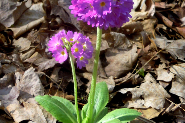 Primula simply love a deep bed of fall leaves decomposing and holding moisture to grow in. I used to remove all the winter cover each year in the spring until I realized the many advantages of leaving the natural cover in place. The primula will push up through the leaf cover when it’s time for them to arrive in all their glory. Juliana primroses, with their shorter growth, will need some of the leaf cover removed which is why I plant them towards the front of a bed or path.