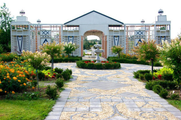 The Temple Garden has a classical design with the use of circles and squares. A wrought iron dome, on pillars 10 feet (3 m) high is surrounded by four fountains. There are floral displays and statues completing this garden.