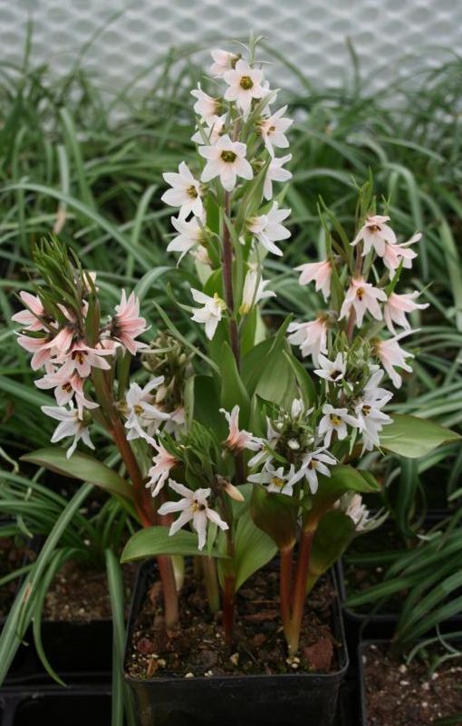 It is a most unusual Fritillaria, but not very difficult to grow ( flowering it is another thing! ). It has roots almost all year round and needs to be kept moist to very moist, in an open free draining 'woodsy' style mix. I have a number in pots and they are outside spring, summer, fall then into a shaded greenhouse for winter when I keep them on the drier side, until flowering ( hopefully!) in spring. Is it allowed to send 'rice grains' to USA? If so let me know in spring if you'd like me to send some in summer.