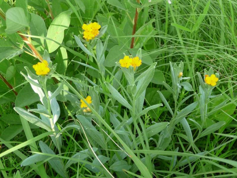 Pedicularis lanceolata has a very distinctive foliage, unlike anything else on the prairies in Minnesota.  Lithospermum canascens complements itself with chalky orange flowers and blue-gray foliage.