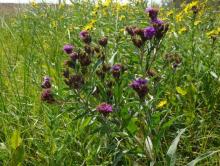 The invasive Canada thistle (Cirsium arvense) is present, but only at the edges of the prairie where it abuts with agricultural fields.  Native wetland thistles are tall and have beautiful flowers at eye level, enhanced greatly by their intricate involucres (floral bracts).