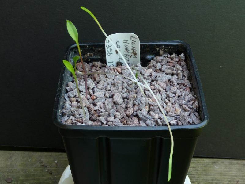 Wed, 05/01/2013 - 8:54amNomocharis aperta - planted 25Mar2013 at 60-65F. Emerged in 31 days.