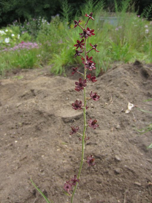 Sun, 08/18/2013 - 8:43amSince Veratrum is in the Melanthiaceae, I decided to put this Veratrum entry here. While digging through 4' tall weeds in my grass-overrun Allium garden, I came across this delightful little Veratrum formosanum in bloom, luckily I noticed the single narrow stalk and little maroon flowers and didn't trample it. I had planted it 3 years ago as a small seedling from Russell Stafford of Odyssey Bulbs. At just 15" now, it is said to grow up to 2', small by Veratrum standards. From Taiwan, it appears to be fully hardy here.