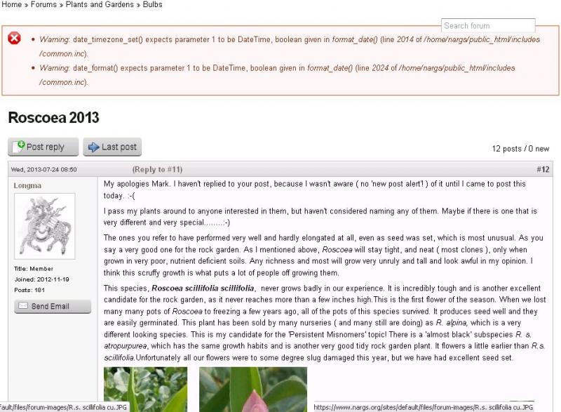 Wed, 07/24/2013 - 9:51amI noticed in the Roscoea topic, that at the top of page 2, after Longma's latest post, there is a time zone error at the top. What is causing that?