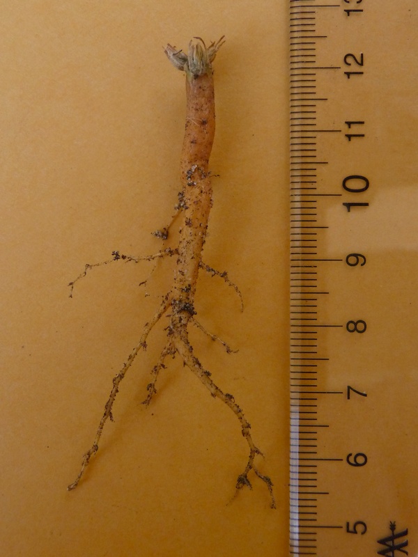 And as I was digging around, I found this: a blue grass stolon had grown right through a bulb!
