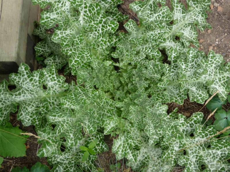 I allow two bristly annuals in the garden: a variegated Humilis sp., and Borage (Borago officinalis).