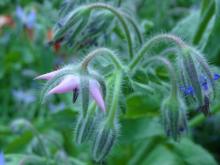 It's nice to be able to nibble in the garden. Borage flowers are edible and make a colorful addition to salads.