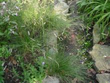 Mon, 08/19/2013 - 6:29pmRick, the images of Kentucky blue grass piercing Scilla bulbs is an eye-opener. Now I worry I have much more to content with, on my large Allium garden overhaul (after 2-1/2 years of neglect and no weeding). The primary invasive is from aggressive stoloniferous field grass (don't know what genus and species) that completely envelope plants; I've been trying to loosen soil and pull the horizontal stolons for years, but without success, the only answer is a complete and thorough spading. Now I fear, I shall have to look closely, washing soil off of bulbs and rhizomes, to make sure it's not harboring a penetrating stolon like those that you show. Here's a couple pics showing just how engulfed in grass and goldenrod some of the Alliums have become, looks sort of like a high-grass prairie view... I have the work cut out for me.