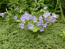 Campanula sarmatica; Hosta 'Blue Mouse Ears':