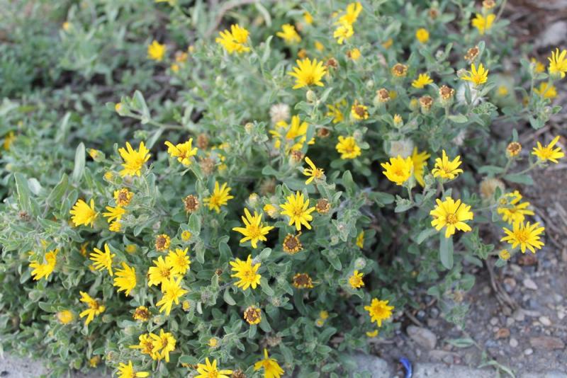 I don't have this dryland prairie native plant in the rock garden, but it would be a good choice for there - Heterotheca villosa: