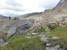 Base of LIttle Hector (those braver and more energetic than me would ascend the angled slope to the summit and terrific views of the glacier):